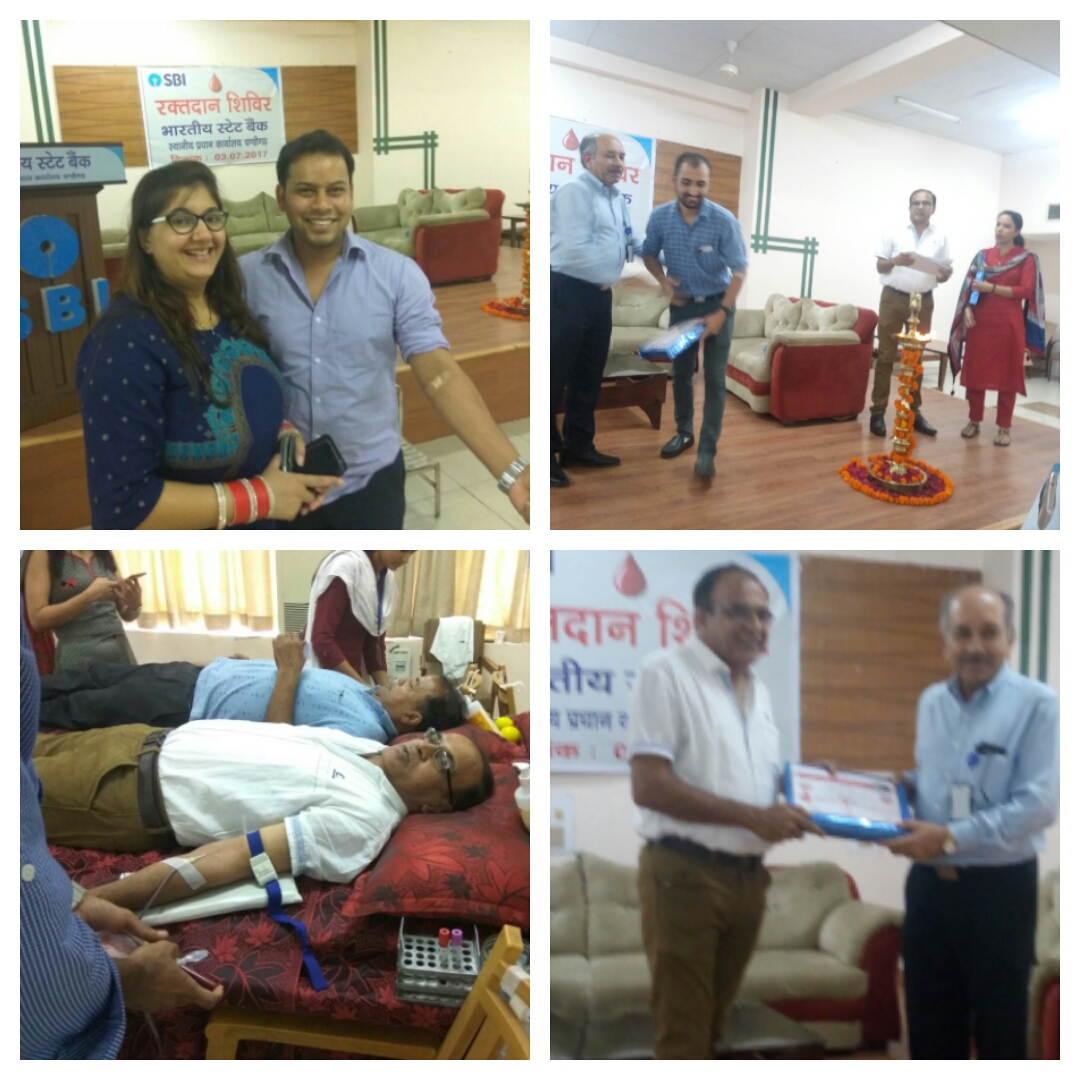 चंडीगढ़ ; 3 जुलाई; आरके शर्मा विक्रमा /एनके धीमान ;-----सोहनी सिटी के हार्ट कहे जाने वाले सेक्टर 17 स्थित भारतीय स्टेट बैंक के जोनल मुख्यालय के सभागार में एसबीआई के स्थापना दिवस के उपलक्ष्य में आज एक स्वैच्छिक रक्तदान शिविर का आयोजन किया गया ! आयोजक मंडल में अग्रणी पवन कुमार मदान और जनसम्पर्क अधिकारी मिस्टर कपूर सहित अशोक कुमार शर्मा के मुताबिक उक्त रक्तदान शिविर में 160 महिला पुरुषों ने स्वैच्छा से रक्तदान महादान महायज्ञ में योगदान की आहुति डाली ! बैंक के अनेकों शीर्ष अधिकारी भी रक्तदान शिविर के समापन होने तक उपस्थित रहे ! बैंक के मुख्य महाप्रबन्धक अनिल किशोरा और उनकी धर्मपत्नी [फर्स्ट लेडी ] ने सभी रक्तदानियों को प्रशंसा पत्र और उपहार देकर सम्मानित और प्रोत्साहित किया ! आज उक्त रक्तदान शिविर में एक नवविवाहित जोड़े ने एक साथ रक्तदान किया और इसे जीवन का अविस्मरणीय यादगर योगदान भी कहा ! अपने प्रोत्साहन संदेश में एसबीआई के सीजीएम अनिल किशोरा ने युवा रक्तदानियों को दूसरे के प्राण बचाने के लिए अतुल्य दान रक्तदान करने की महत्ता बताते हुए खूब प्रेरित भी किया ! बैंक के अन्य कई सहयोगी यूनिटों से भी रक्तदानी खूब उत्साह से उमड़े और रक्तदान के महाकुम्भ में अपना अपना योगदान दिया ! सभी रक्तदनियों के लिए अंडे फल दूध और जूस आदि का व्यापक प्रबंध सराहनीय रहा !
